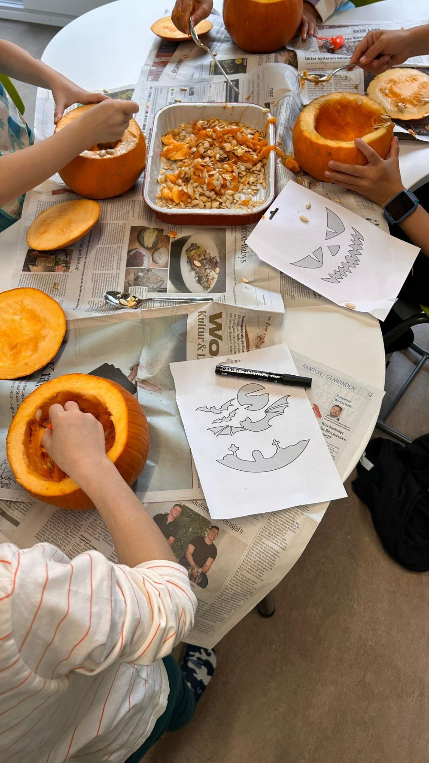 Am Donnerstagvormittag stand Kürbisschnitzen auf dem Programm, bei dem die Kinder ihrer Fantasie freien Lauf lassen konnten. Am Nachmittag verwandelte sich ein Raum in ein kleines Kino, in dem sie einen kinderfreundlichen Film mit Popcorn genossen.