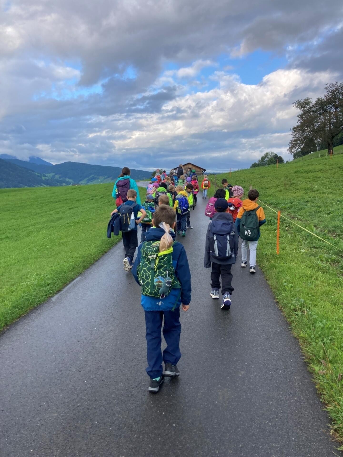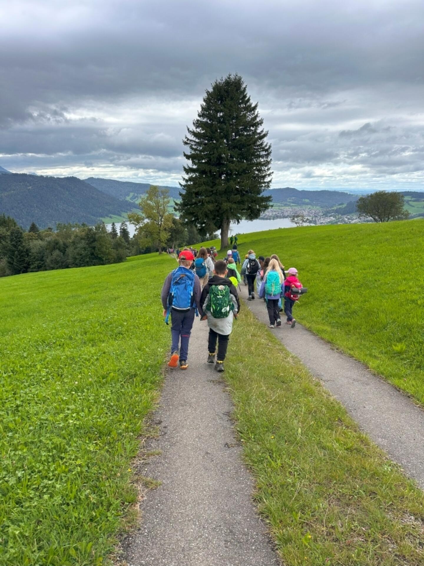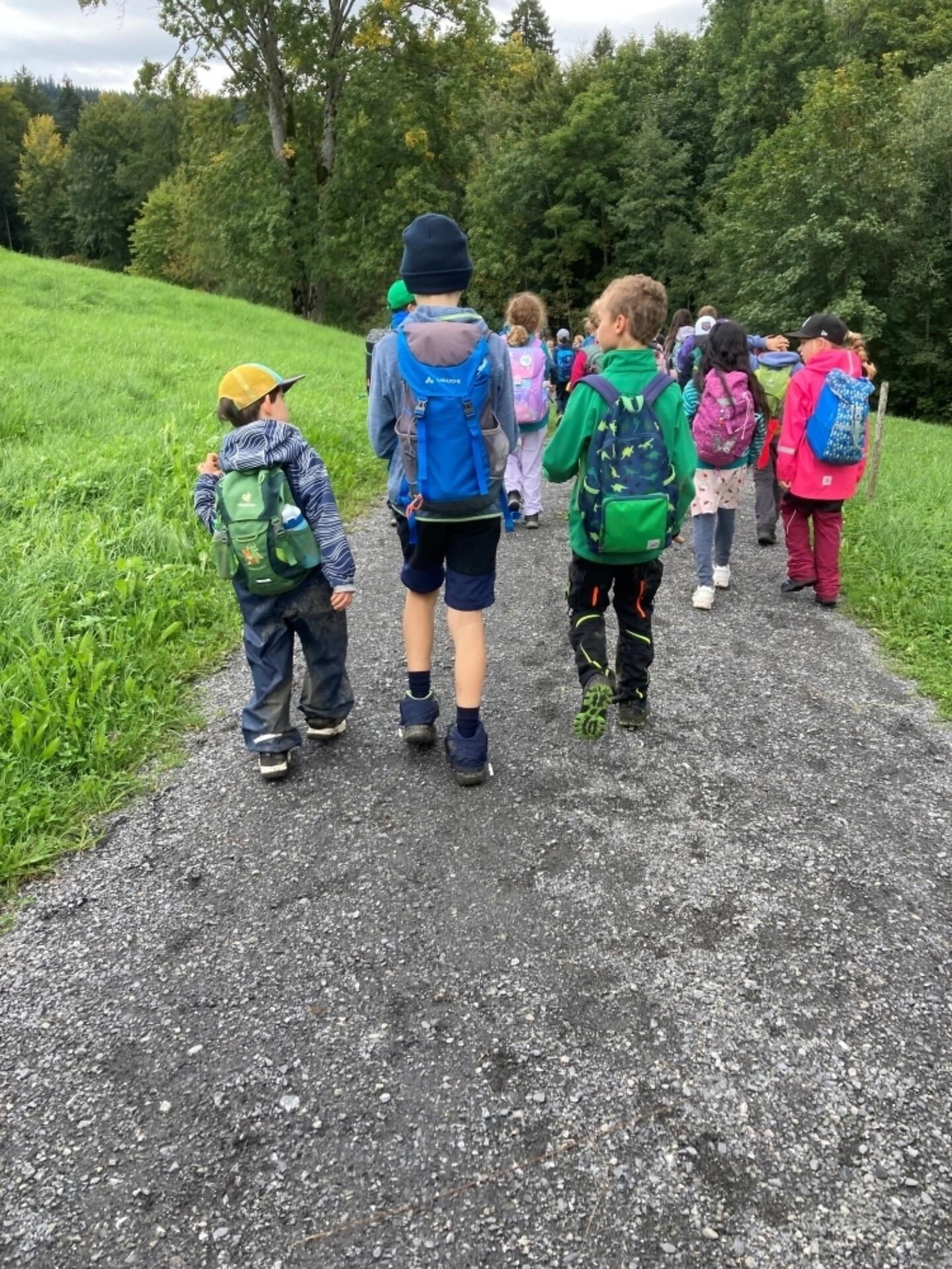 Trotz unsicherer Wetterlage haben wir uns entschieden, den gemeinsamen Schulhausanlass am Donnerstag, 11.09.2025, durchzuführen. Wir haben uns darüber gefreut, dass so auch unsere 6. Klässler:innen bei der Herbstwanderung dabei sein konnten, da sie beim Verschiebedatum in der kommenden Woche im Klassenlager sind.