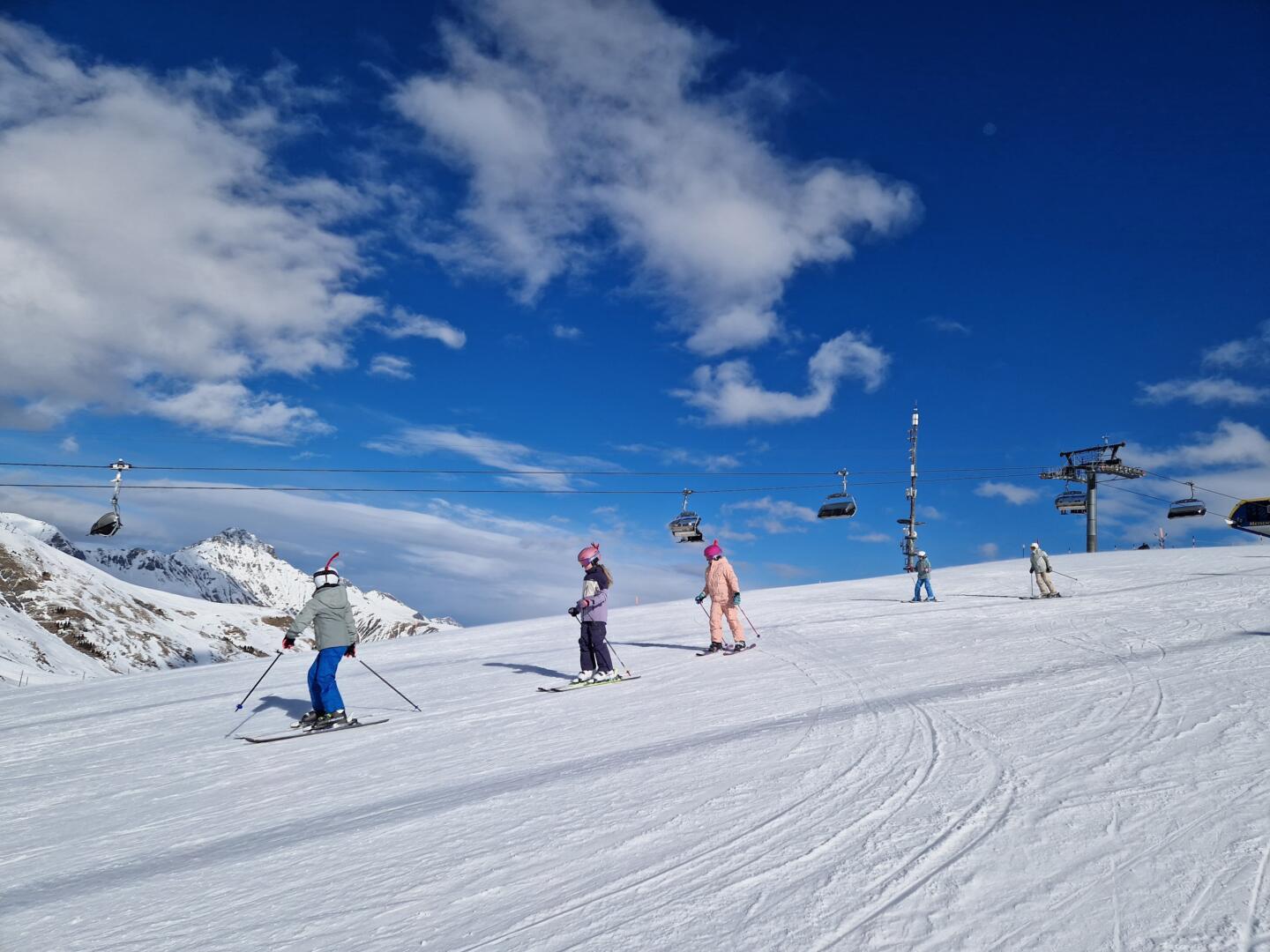 Der Tag startete um 07:00 Uhr mit Musik. Danach gab es um 7:30 Uhr Frühstück. Um 09:00 Uhr gingen wir alle auf die Pisten. Bis um 11:45 Uhr durften wir einen grossartigen Ski- und Snowboardmorgen geniessen. Zum Mittagessen gab es Pommes im Hahnenmoos.