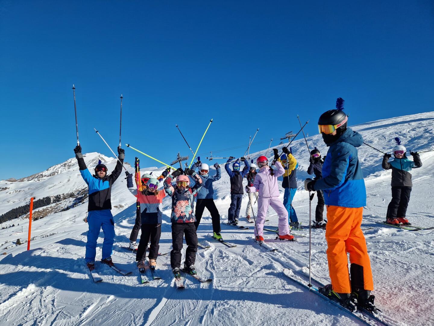 In den Tag starteten wir mit Geburtstagsmusik, weil Noelia Geburtstag hatte. Nach einem leckeren Frühstück machten wir uns bereit für die Piste. Dort verbrachten wir einen anstrengenden, aber auch grossartigen Morgen mit traumhaft schönem Wetter. Nach einem feinen Zmittag im Hahnenmoos, ging es wieder ab auf die Piste.
